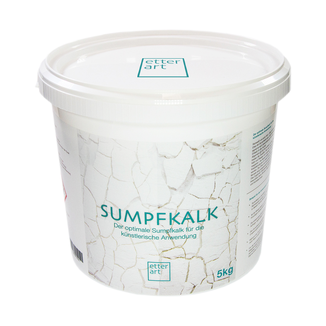 Reinweiß und sehr fein – das zeichnet den Etter Art SUMPFKALK aus. Und deswegen eignet er sich besonders gut für den Einsatz in der Kunst. Allgemein gilt für Sumpfkalk: je älter, desto besser die Qualität. Das liegt daran, dass Kalk und Wasser nur langsam miteinander reagieren – es dauert einige Zeit, bis die Kristallstrukturen im Kalk immer feiner werden.